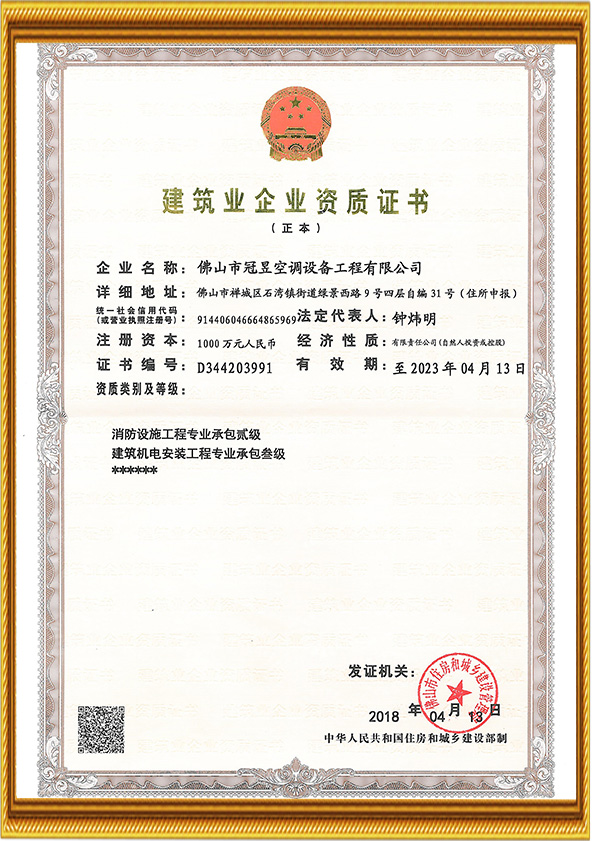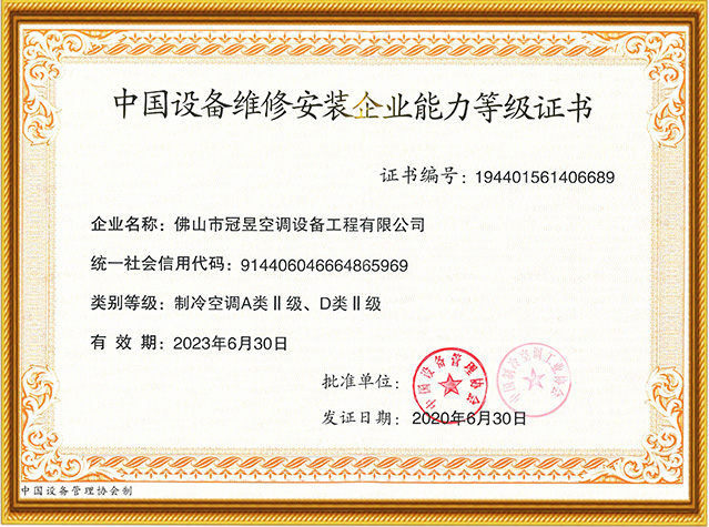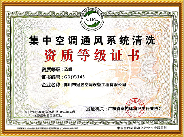 公司維修保養資質健全,擁有維修安裝二級資質,集中空調通風系統清洗資質。