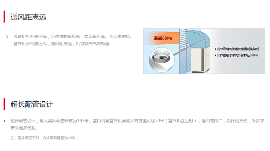 日立高效勁風系列采用直流變頻技術,高靜壓設計,送風量大、送風距離遠且可引入新風,可滿足生產車間、大型商超等密集人群場所的空調使用要求。