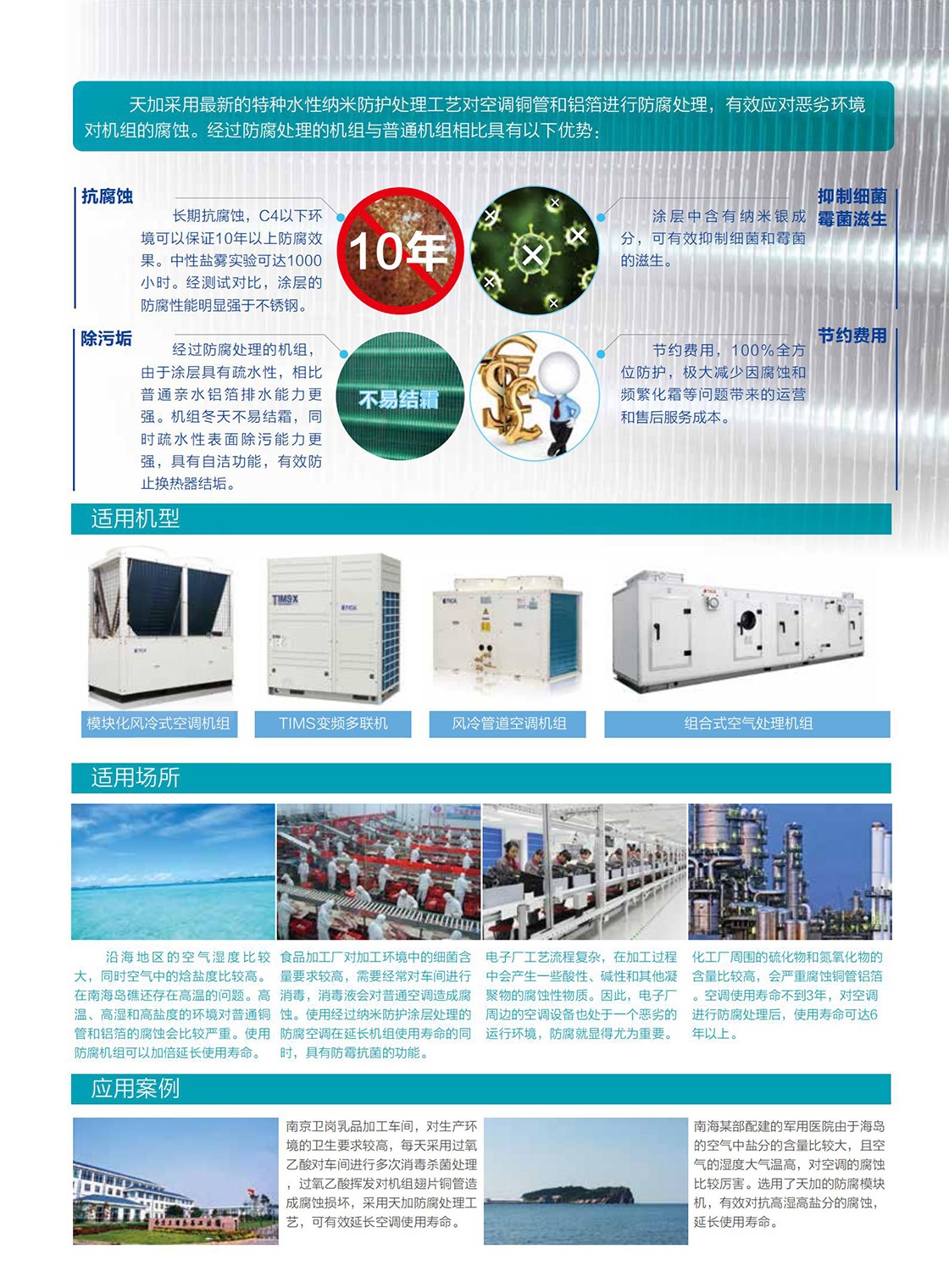 2、包含工藝型、舒適型、常年制冷制熱型、熱回收型,滿足各種場所的需求;
