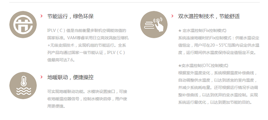 日立中央空調傾情打造VAM尊睿系列,為用戶提供適用于別墅、大戶型、精致公寓以及小戶型的不同系列產品,從高端人群到小康之家,從敏感的兒童到體弱的老人,全方位滿足各類人群的使用需求。